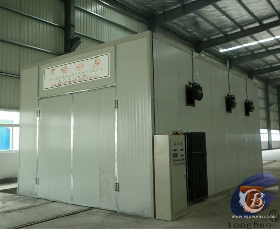 此次噴砂房采用蜂窩式噴砂地板技術(shù),應(yīng)用風(fēng)力輸送原理將砂料回收,除塵系統(tǒng)的濾芯采用日本進口產(chǎn)品,配套噴砂設(shè)備為噴砂機TB-4720壓送式噴砂機,此噴砂設(shè)備可用于室外大型工件的噴砂除銹作業(yè),船體外表面噴砂,火車、箱體類外表面噴砂處理等等。