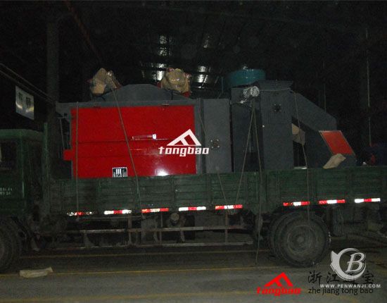 浙江通寶訊:杭州蕭山客戶吊鉤吊掛式拋丸機(jī)交付使用,機(jī)器型號為TB-Q378雙吊鉤式拋丸機(jī),顏色灰紅,除塵器采用客戶要求定做的濾