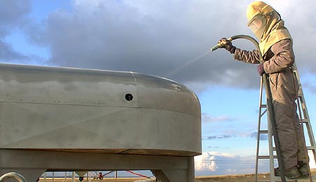 利用氣力回收噴砂房對(duì)火車表面進(jìn)行外型處理 工作現(xiàn)場(chǎng)示意圖 |